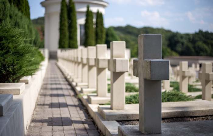 Elegant bronze plaques and markers with custom engravings and military honors available.